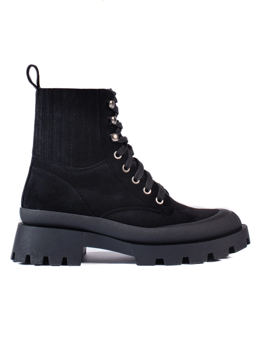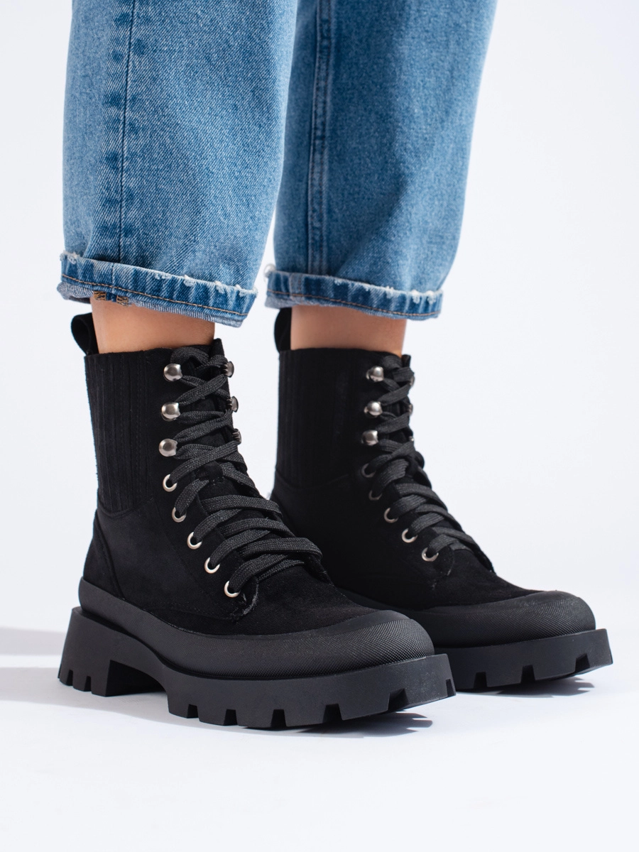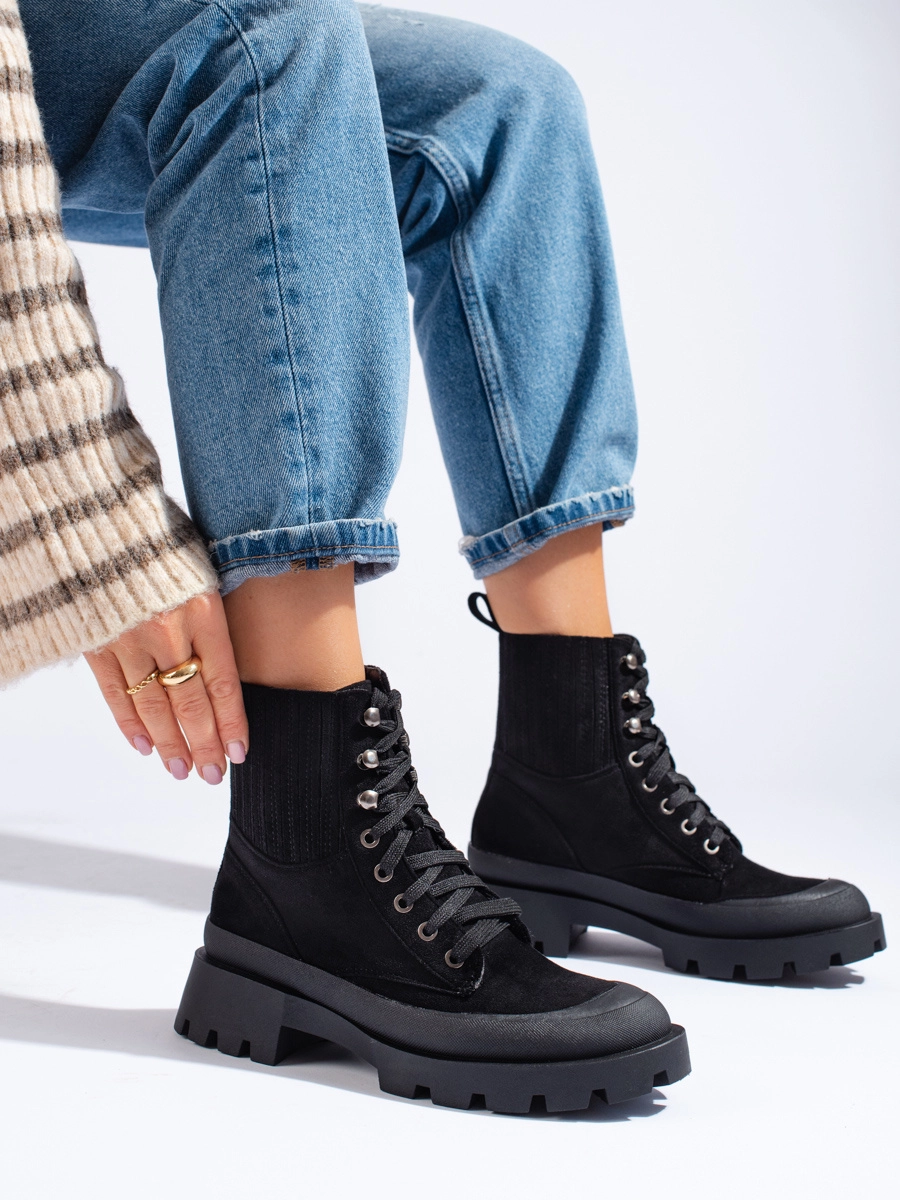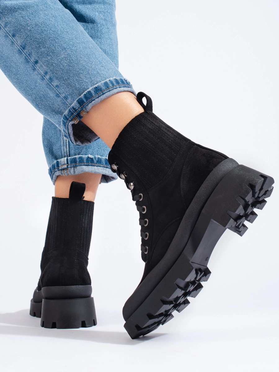 Designové dámské kotníkové boty černé na plochém podpatku