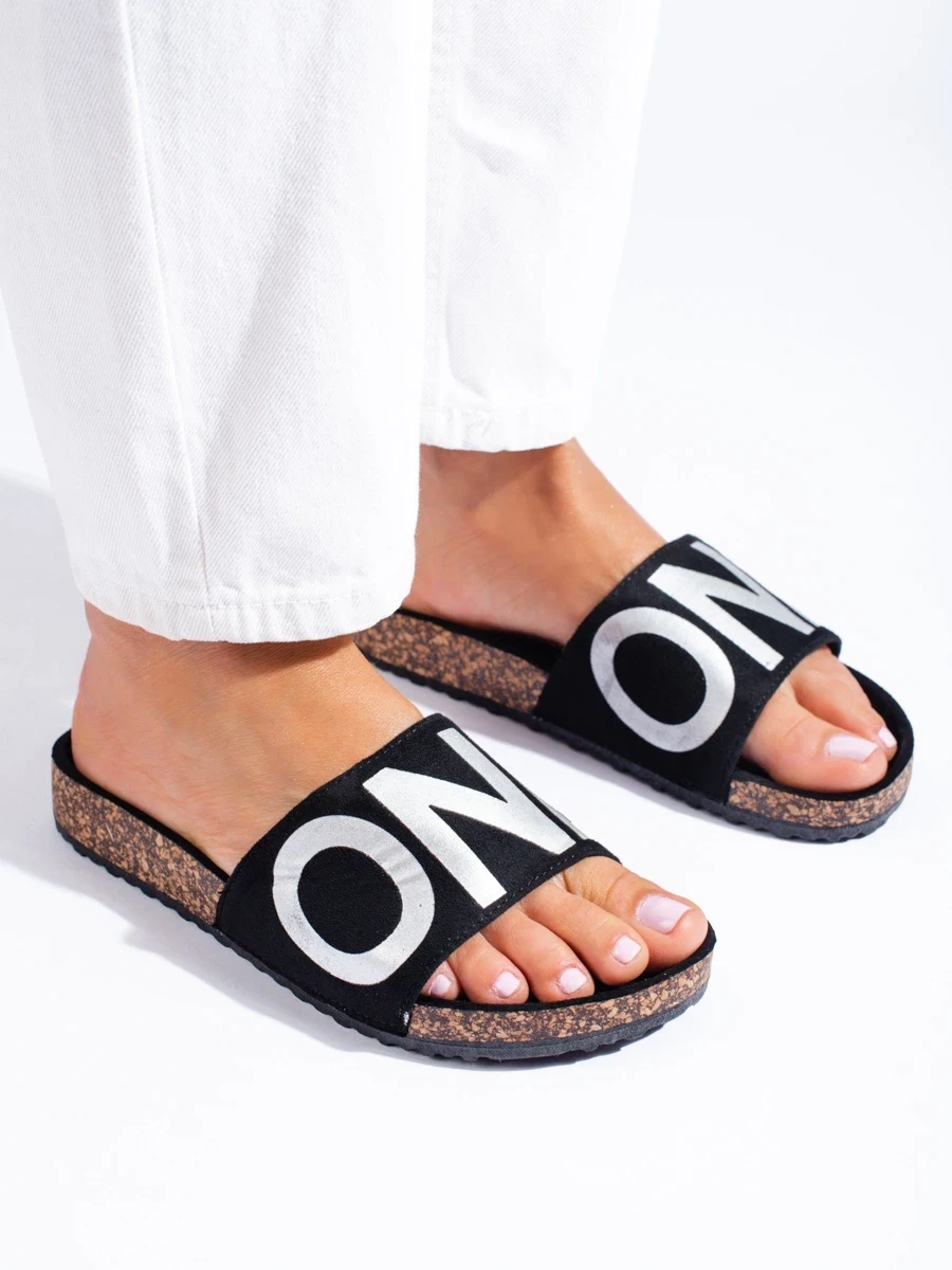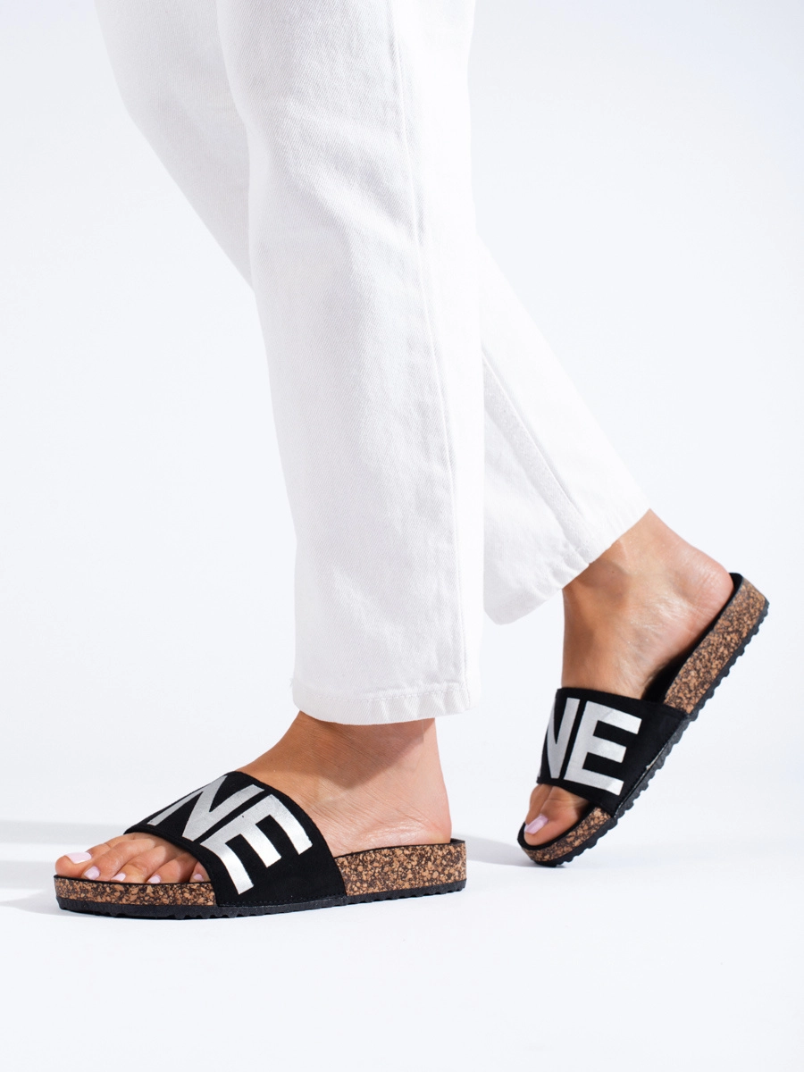 Zajímavé dámské nazouváky černé bez podpatku